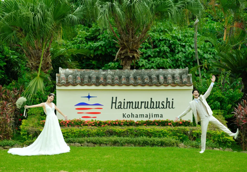 八重山諸島随一の高級ビーチリゾート はいむるぶし小浜島のビーチ・ガーデンでのお二人だけの挙式風セレモニー・フォトウェディングと、はいむるぶし小浜島の様々なロケーションでのウェディング・フォトグラファーによる前撮り撮影がセットになった二人挙式セレモニーフォトウェディング・パッケージプラン。パッケージ・プランは撮影時間90分(前撮りフォトウェディング撮影60分+二人挙式撮影30分)・撮影データ150枚納品(前撮りフォトウェディング撮影90枚+二人挙式撮影60枚)となり、はいむるぶし小浜島リゾート内の様々なロケーション&ビーチでの撮影許可料、各会場での挙式風装飾、リゾート内のカート送迎、ヘアメイク、撮影中のコーディネーターが料金に含まれたお得な撮影パッケージプランです。